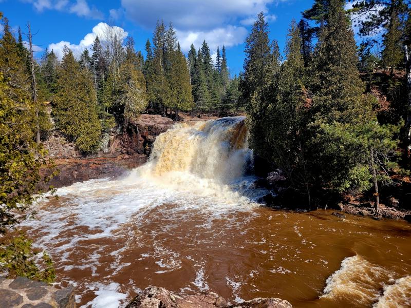 Temperance River Falls: About 30 minutes north, Temperance River Falls brings the drama. Water carves its way through ancient volcanic rock, crashing and swirling through a deep gorge before bursting into daylight. The trails here let you peek over dizzying drops, and the whole place feels wild and untamed — perfect for a little adrenaline with your scenery.